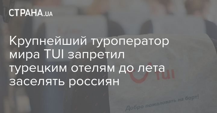 Крупнейший туроператор мира TUI запретил турецким отелям до лета заселять россиян