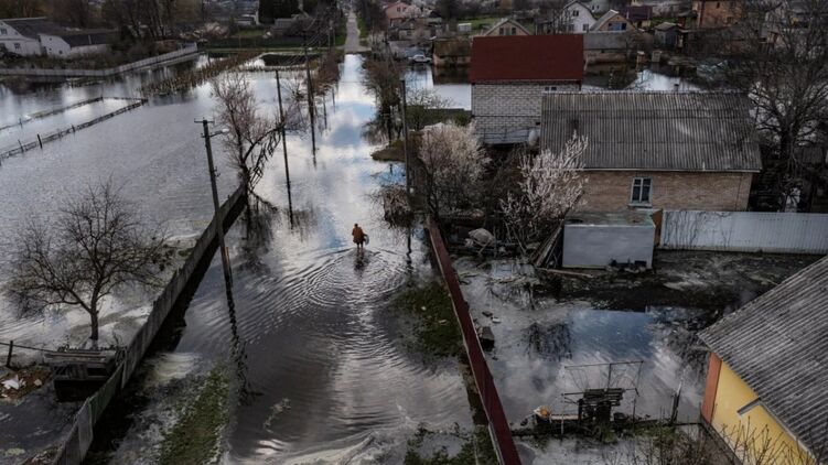 Опубликованы кадры из села Демидов, которое затопило во время боевых действий на Киевщине. Фото и видео с места бедствия показало издание The New York Times.