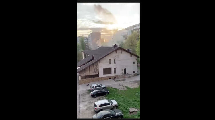 Над вокзалом поднимается дым, стекла в соседних домах повылетали.