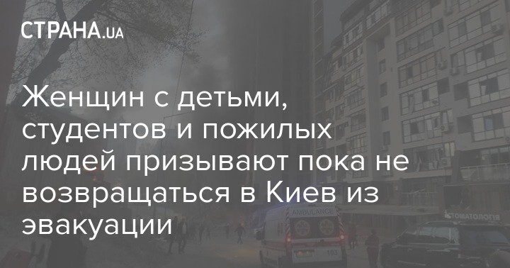Женщин с детьми, студентов и пожилых людей призывают пока не возвращаться в Киев из эвакуации