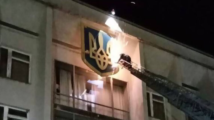 Российские оккупанты в Токмаке Запорожской области сняли украинскую символику со здания горсовета.