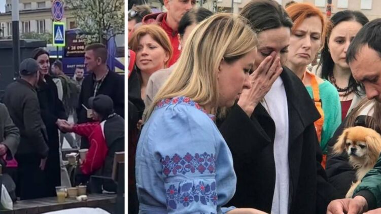 Мы рассказывали, что во время своего визита Анджелина Джоли пообщалась с львовянами на вокзале в городе, а также попала на сигнал воздушной тревоги и вместе с волонтерами бежала в укрытие.