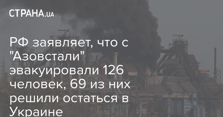 Минобороны РФ заявило, что с территории находящегося в Мариуполе завода "Азовсталь" эвакуировали уже 126 человек. 30 апреля территорию завода покинули 46 человек, 1 мая вывезли еще 80 гражданских.