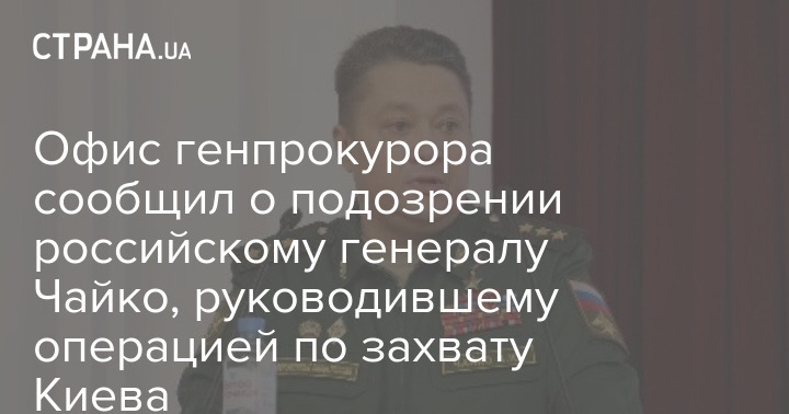 Командующему войсками Восточного военного округа России Александру Чайко Офис генпрокурора Украины сообщил о подозрении в попытке захвата Киева.