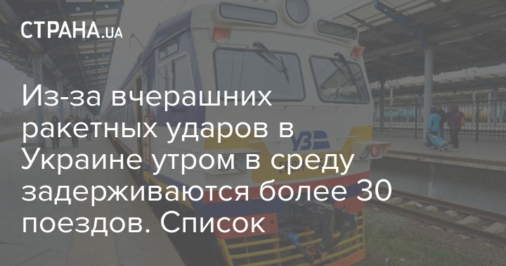 Из-за вчерашних ракетных ударов в Украине утром в среду задерживаются более 30 поездов. Список