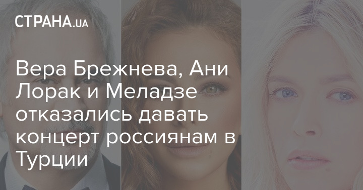 Российский певец Валерий Меладзе, артистки Вера Брежнева и Ани Лорак, отказались от выступления для россиян в турецком отеле Port Nature Luxury Resort Hotel & Spa. Концерты должны были состояться весной и летом текущего года.
