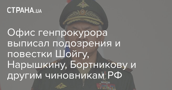 Офис генпрокурора выписал подозрения и повестки Шойгу, Нарышкину, Бортникову и другим чиновникам РФ