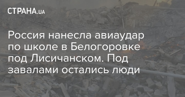 Губернатор Луганской области Сергей Гайдай сообщил, что российские войска нанесли авиудар по Белогоровке - поселку вблизи Лисичанска. Разрушена школа, в подвале которой прятались люди.