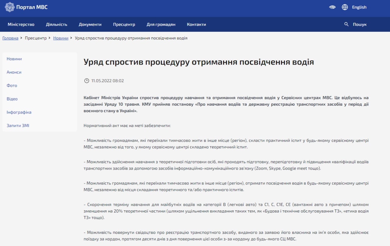 10:03 Кабмин вчера упростил процедуру получения водительского удостоверения в Сервисных центрах МВД.