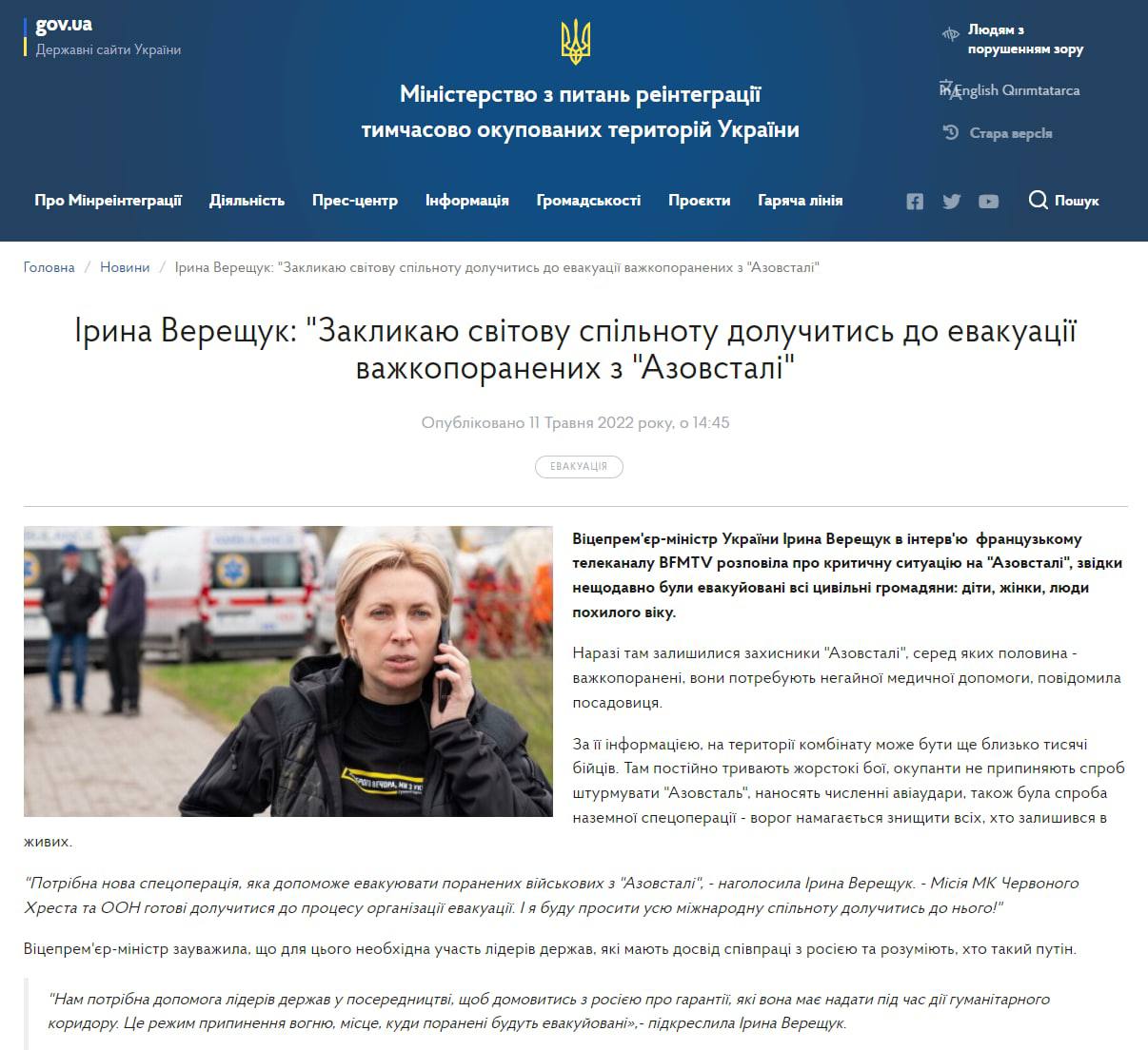 В Мариуполе продолжают штурмовать "Азовсталь". Власти заявили, что деблокировать сейчас украинских военных с "Азовстали" невозможно, но Украина использует все возможные дипломатические каналы, чтобы организовать эвакуацию украинских военнослужащих из Мариуполя.