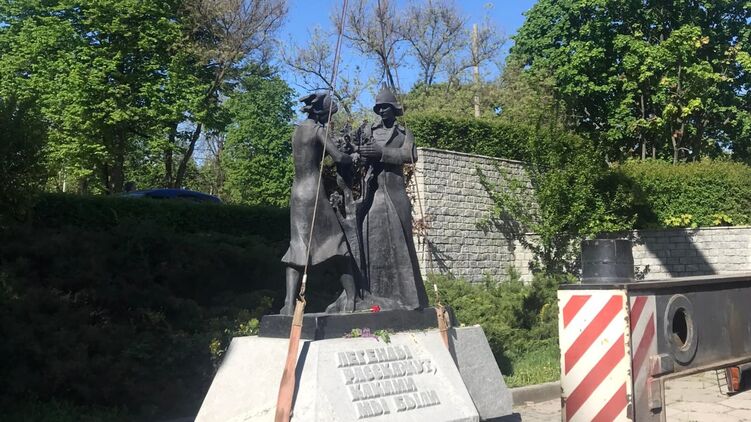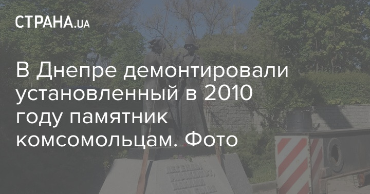 В Днепре на Соборной площади вчера демонтировали памятник комсомольцам - парню и девушке, которые сажают дерево. Надпись на монументе гласила: "Легенды расскажут, какими мы были".