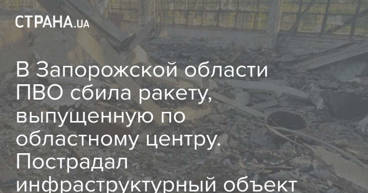 "Ракета разорвалась над инфраструктурным объектом в населенном пункте возле областного центра. Объект понес серьезные разрушения", - сообщили в ОВА.