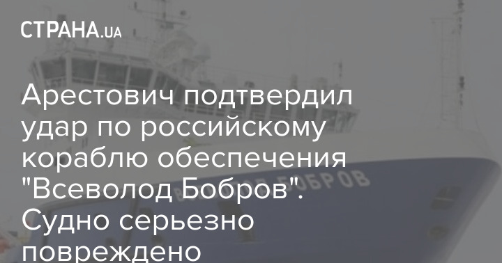 "Из новых событий у нас сегодня новый корабль, по предварительным данным — "Всеволод Бобров". Это такое судно тылового обеспечения, которое прибыло аж с Северного флота", – сказал Арестович.