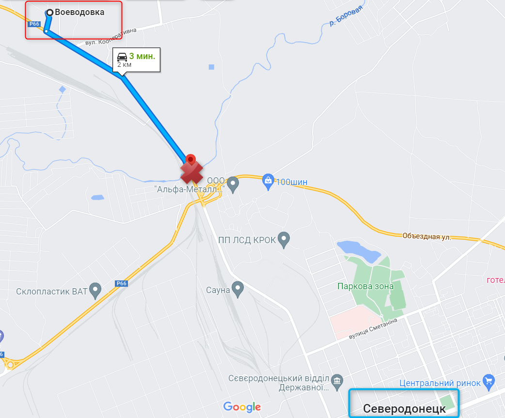 Там, к слову, уже взорвали большой автомобильный мост через реку Боровая. Губернатор Сергей Гайдай, не уточнил, кто это сделал. Но мост находился в двух километрах к югу от Воеводовки, которую вчера захватили россияне, по дороге на Северодонецк. То есть, скорее всего, его взорвали ВСУ, чтоб замедлить продвижение противника.