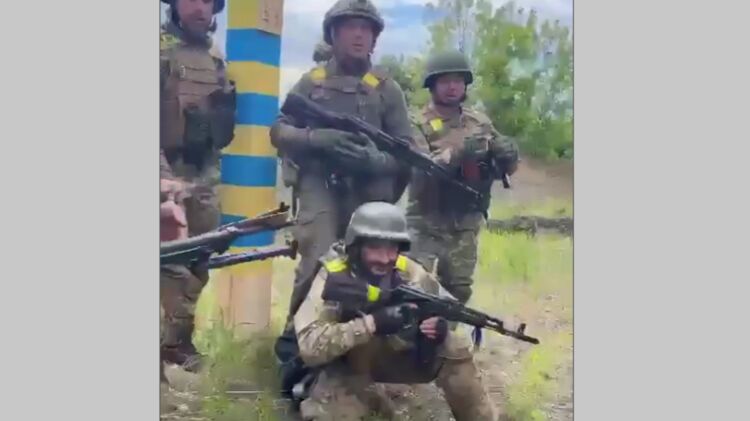 Украинские военные показали видео, как они выходят к границе с Россией в Харьковской области.