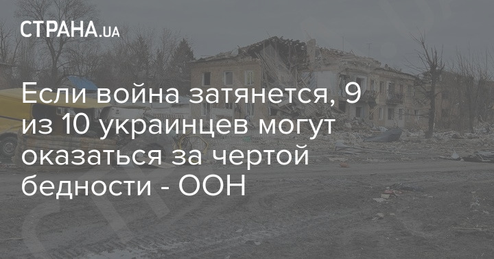 Если война в Украине затянется, 9 из 10 украинцев могут оказаться за чертой бедности. Об этом сообщает ООН.