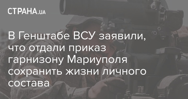 В Генштабе ВСУ заявили, что отдали приказ гарнизону Мариуполя сохранить жизни личного состава