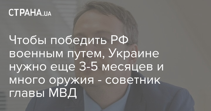 Чтобы победить РФ военным путем, Украине нужно еще 3-5 месяцев и много оружия - советник главы МВД