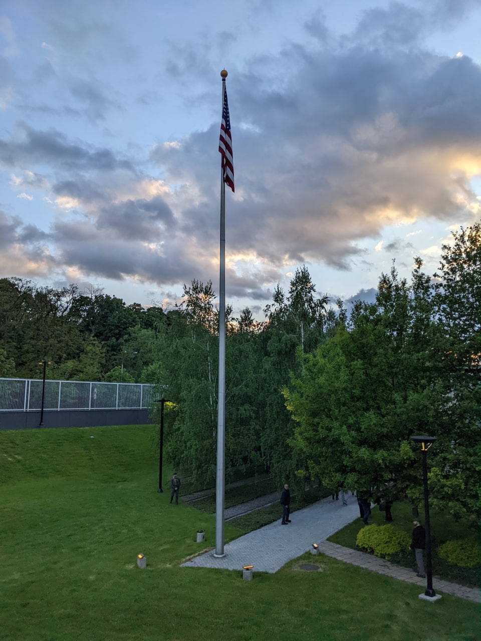 Над посольством США в Киеве снова подняло американский флаг в честь официального открытия ведомства спустя три месяца.