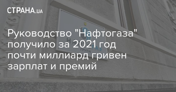 Руководство "Нафтогаза" получило за 2021 год почти миллиард гривен зарплат и премий