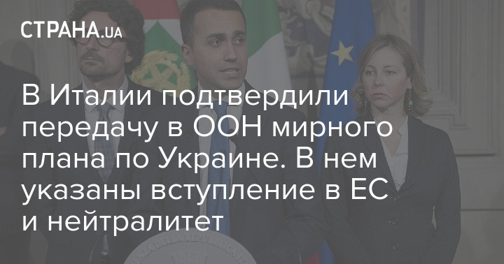 Министерство иностранных дел Италии подтвердило существование мирного плана по Украине, переданного в ООН.