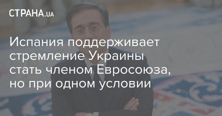 "Если отчет Европейской комиссии будет благоприятным, Испания поддержит стремление Украины стать кандидатом, и после этого главы государств и правительств встретятся, чтобы обсудить, как это может произойти", - сказал Альбарес.