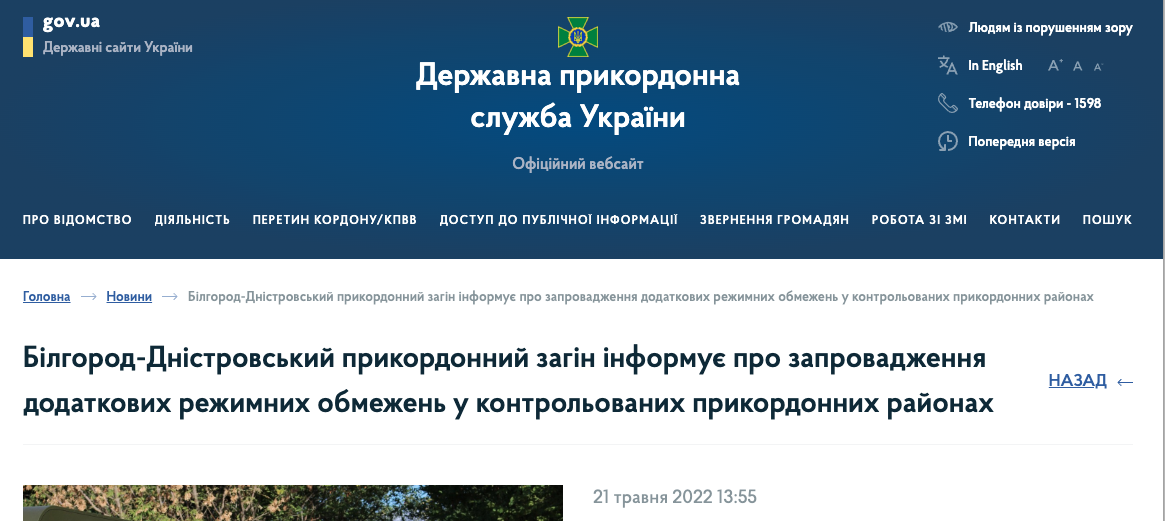Украина ввела дополнительные ограничения на въезд в Белгород-Днестровский район Одесской области. Ужесточается режим пересечения на южной границе с Приднестровьем.