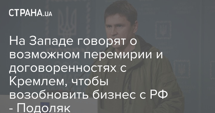 Запад хочет прекращение огня и договорённостей с Кремлем, чтоб возобновить бизнес с РФ - Подоляк