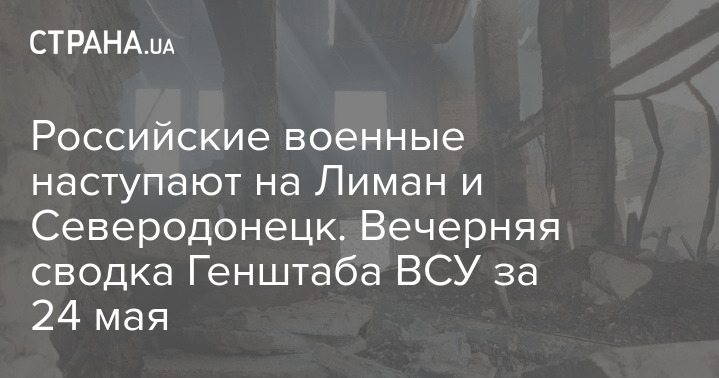 Российские войска ведут наступление на северо-востоке Донецкой области, в направлении Лимана, Северодонецка, на Бахмутском направлении, в районе Авдеевки, Песок и Марьинки. Об этом говорится в вечерней сводке Генштаба ВСУ за 24 мая.