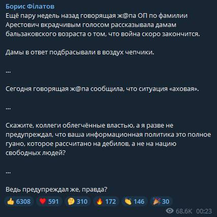 21.59 Ещё заявления Арестовича о ситуации на фронте.