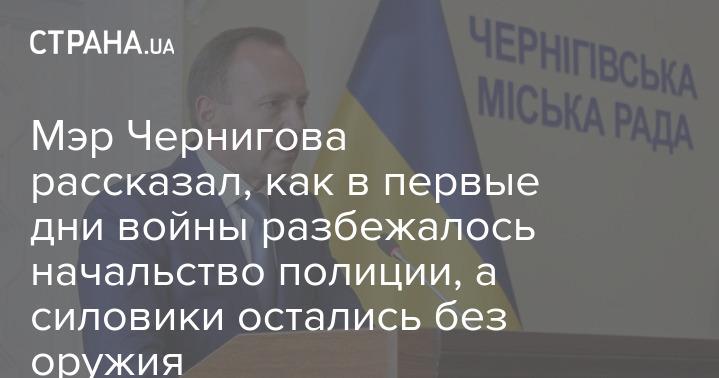 Мэр Чернигова рассказал, как в первые дни войны разбежалось начальство полиции, а силовики остались без оружия