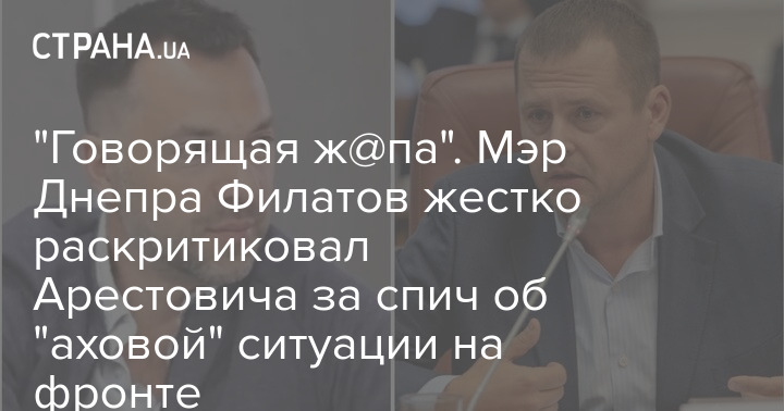 Мэр Днепра Борис Филатов обозвал "говорящей ж@пой с вкрадчивым голосом" советника главы Офиса президента Алексея Арестовича после того, как Арестович в интервью Марку Фейгину заявил, что ситуация на фронте "аховая".