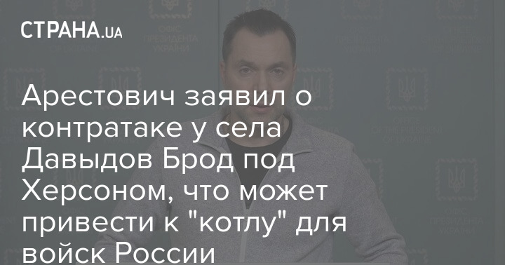Советник главы Офиса президента Алексей Арестович заявил, что украинские войска провели удачную контратаку в районе села Давыдов Брод Херсонской области.