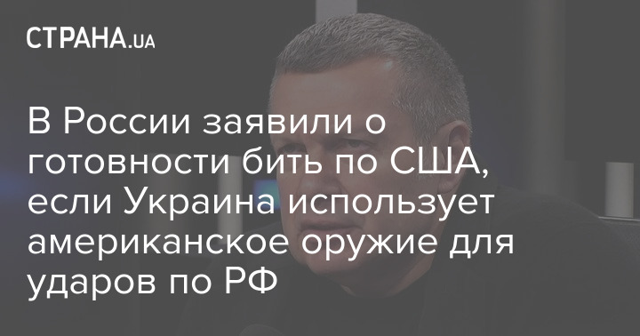 Российский телеведущий Владимир Соловьев в своем эфире говорит, что Россия может нанести удар по "центрам принятия решений" (имея в виду, очевидно, США) в случае, если Украина будет использовать американское оружие для ударов по РФ.