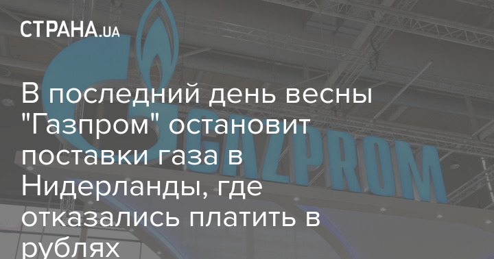 Российская компания "Газпром" с 31 мая останавливает поставки газа в Нидерланды. Причиной стал отказ крупнейшей газовой компании Нидерландов GasTerra платить России за голубое топливо в рублях.
