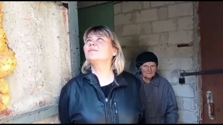 На кадрах запечатлено, как женщина рассказывает о том, что происходило в их доме, и в этот момент раздается гул и прилетает снаряд. В этот момент начинают сыпаться обломки, она закрывает лицо руками, и камера перестает ее снимать.