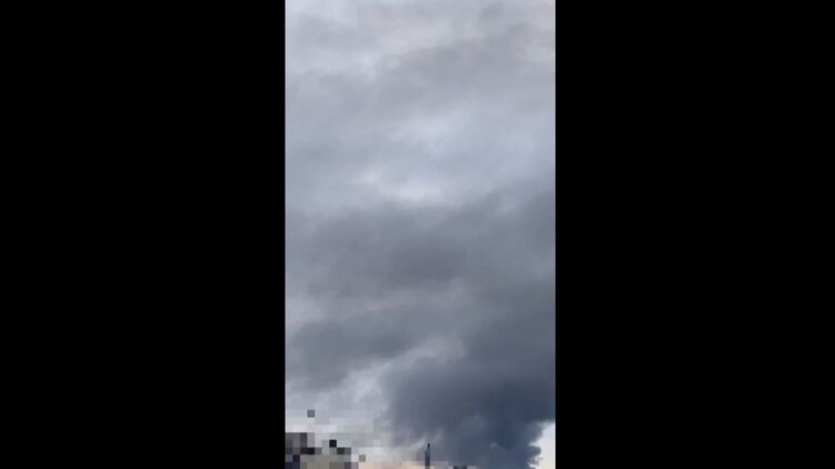 После удара в небо поднялись густые клубы дыма. Скриншот видео