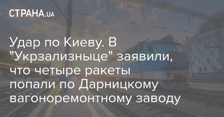 В "Укрзализныце" прокомментировали сегодняшний ракетный обстрел Киева со стороны российских войск. Четыре ракеты ударили по ДВРЗ - Дарницкому вагоноремонтному заводу. Один железнодорожник пострадал.