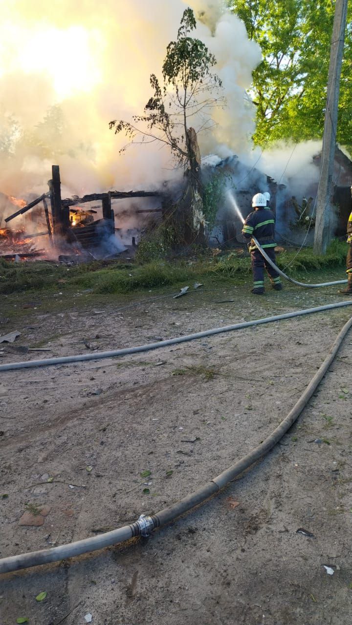 В результате пострадали минимум 6 домов, хозяйственная постройка и гараж. Вспыхнули пожары. Повреждена линия электропередач.