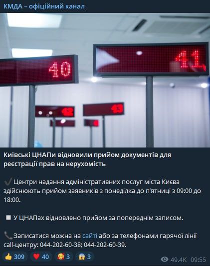 10:27 В Киеве центры предоставления администравных услуг снова принимают документы для регистрации прав на недвижимость.