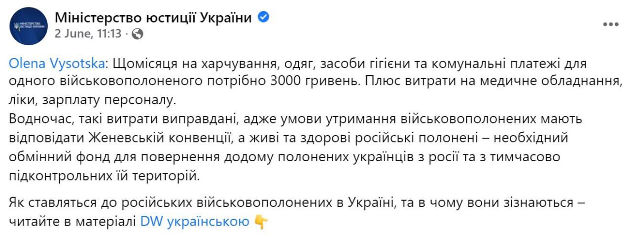 Об этом сообщил Андрей Юсов, представитель Главного управления разведки, глава которого Кирилл Буданов возглавил Координационный штаб по вопросам обращения с военнопленными.