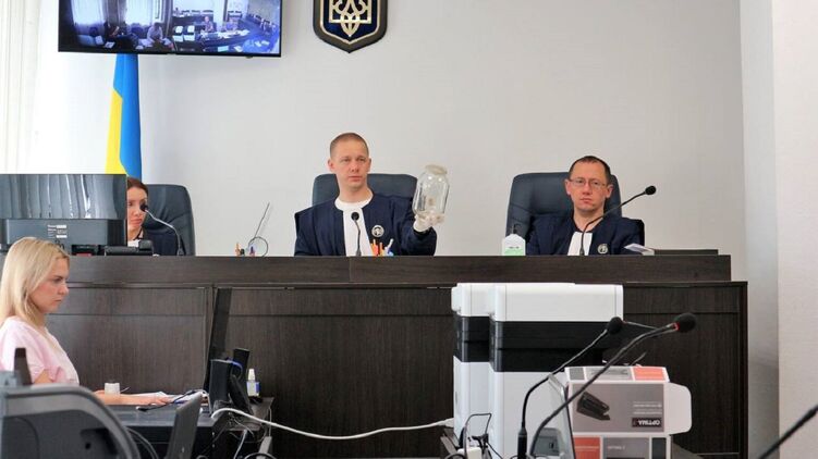 Председательствующий судья Евгений Крук брал каждый пакет и проверял герметичность. Далее судья раскрывал пакет, вынимал доказательства и демонстрировал собравшимся, а также предлагал защите ознакомиться.