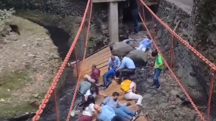 В Мексике обрушился подвесной мост с людьми. Скриншот из видео