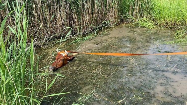 "Сегодня в Службу спасения поступило сообщение, что за пределами села Марьяновка нужно помочь освободить коровку из копанки, заполненной водой, глубиной 3 метра, куда животное попало во время выпаса", - говорится в сообщении.