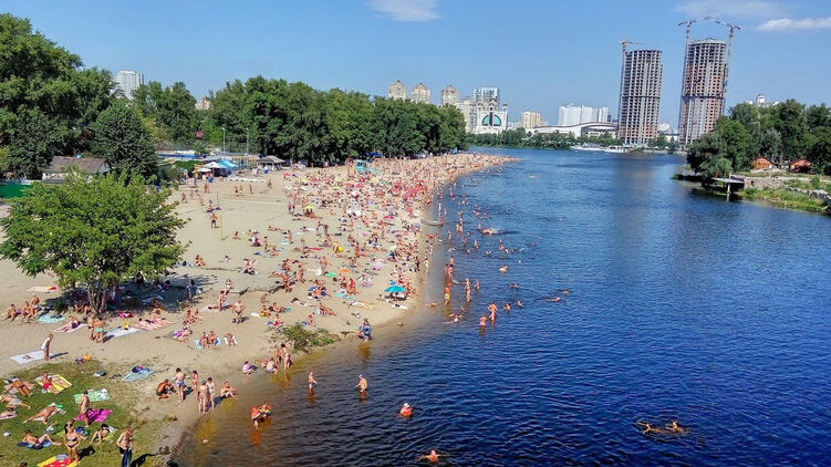 Из-за такой жары вода в Днепре уже прогрелась до 21 градуса, так что можно купаться.