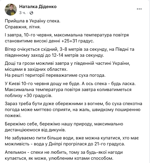 Об этом сообщает синоптик Наталья Диденко.
