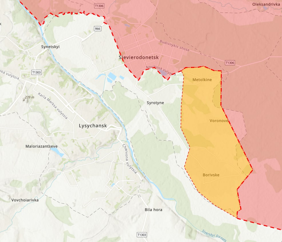 Продолжаются бои за трассу Бахмут-Лисичанск - существенных изменений там нет: трасса по-прежнему под контролем ВСУ, но обстреливается россиянами.