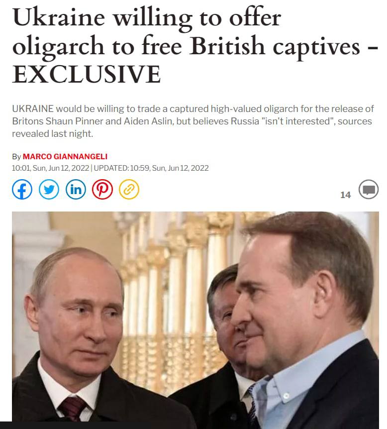 Ранее жена Медведчука Оксана Марченко предлагала обменять его на пленных британцев. И эту идею поддержала Россия. Но Британия и Украина тогда не подтвердили интерес к такой схеме обмена.