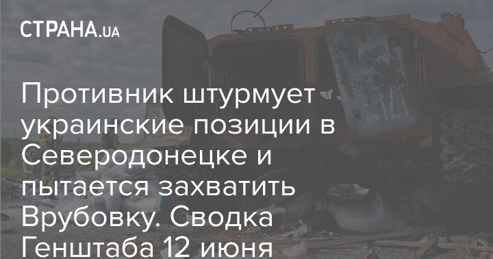 В Генеральном штабе Вооруженных сил Украины опубликовали оперативную сводку с фронта боевых действий по состоянию на 18:00 12 июня, в которой говорится, что российские войска проводят штурм Северодонецка и Врубовки и продолжают обстрелы украинских городов.