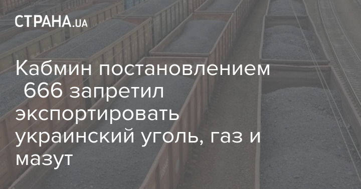 Кабмин постановлением №666 запретил экспортировать украинский уголь, газ и мазут